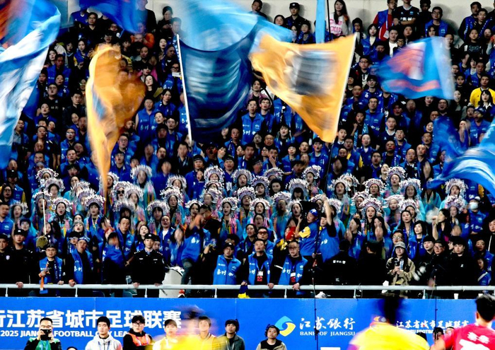 ↑2025年11月1日,在南京奥体中心举行的“苏超”决赛上,泰州队球迷为球队加油助威。图据新华社网上的质疑声当然无法代表所有人,但这些声音有其存在的客观原因。中国足协既不能视而不见,也不能简单归为情绪宣泄。本质上,网上之所以激起担忧,是一场信任危机与权力边界的“博弈”。